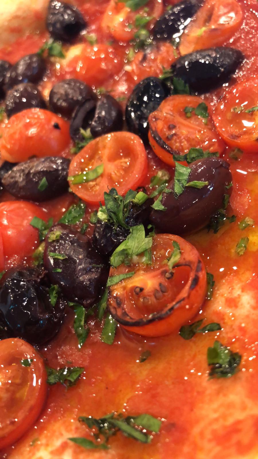 DOP San Marzano Tomatoes, Fiore di Latte cheese, Parmesan cheese, Extra Virgin olive oil Az. Agricola Il Rocolo, Basil.