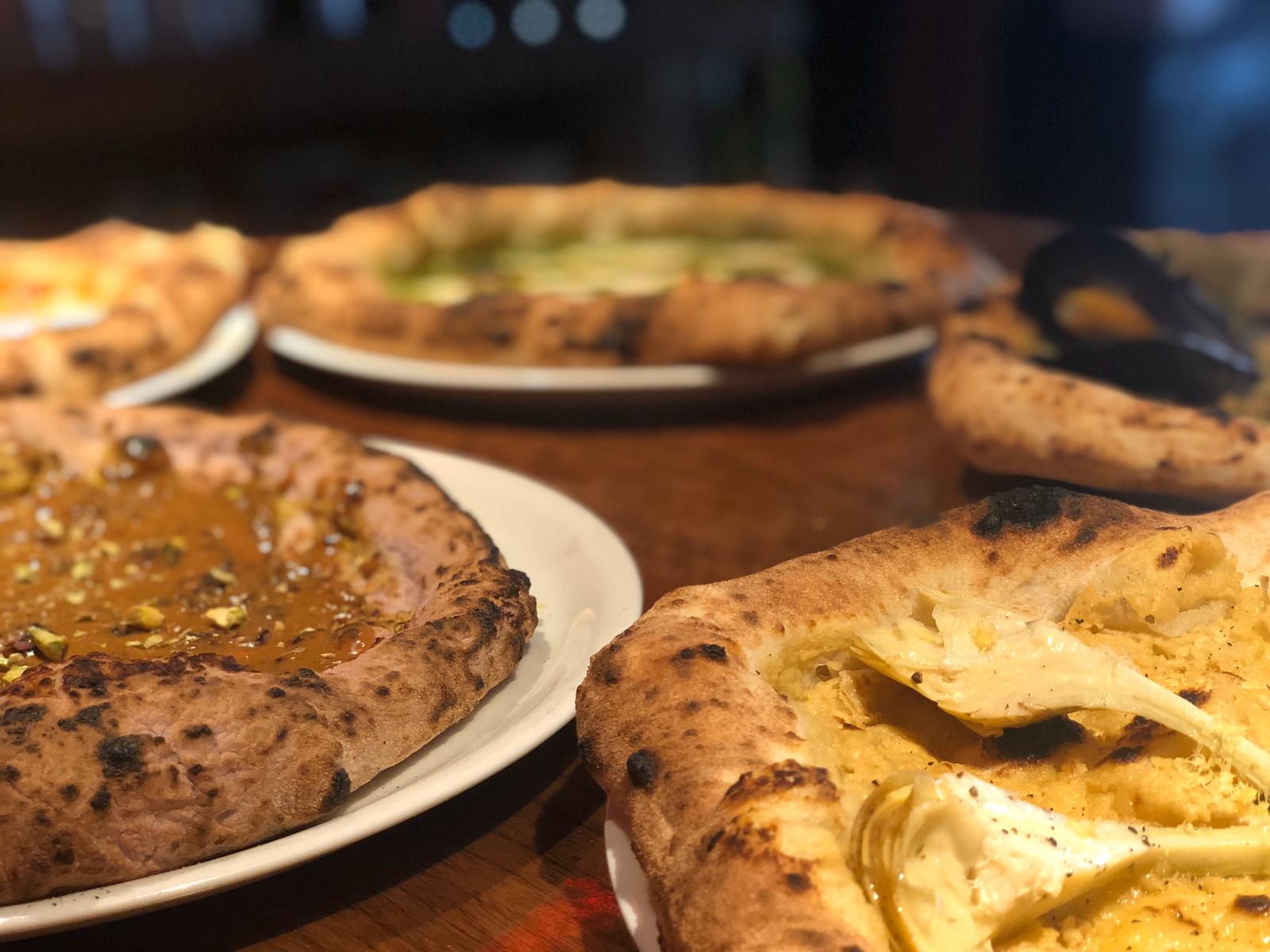 DOP San Marzano Tomatoes, Fiore di Latte Cheese, Double Smoked Ham, White Pertosa Artichoke Slow Food Presidium, Black Olive Dust, Parmesan Cheese, Extra Virgin Olive Oil Az. Agricola Stoica.