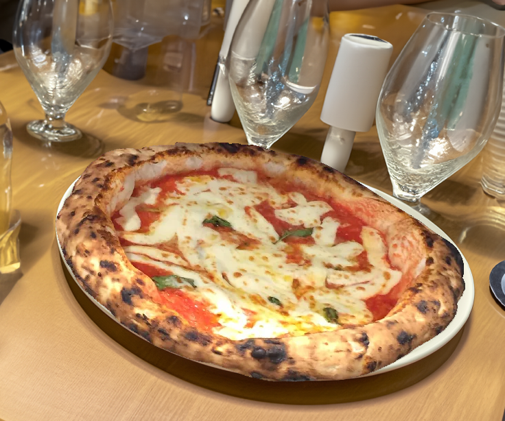 DOP San Marzano Tomatoes, Fiore Di Latte Cheese, 18M.O. Parmesan Cheese, Spicy Salami; Cooked Capsicum, Black Olive Dust, Extra Virgin Olive Oil Az. Agricola Stoica, Basil.